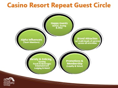 Casino resorts need to create new A.I. (Alphas Influencers). These ALPHAS are your team members who interact with, serve, and deliver experiences to your guests. Managers must consistently “promote” all the resort’s services and amenities -(brands and sub-brands) to all team members. If every worker understands how the resort services layer together to create memorable experiences, a foundation is laid for consistent seamless execution.